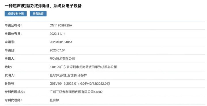 目前,高通和汇顶是超声波指纹识别领域的两大领先者。前许多手机厂商在超声波指纹方面使用汇顶科技方案,但相关超声波指纹识别方案绕不开高通的专利。既然专利绕不过,买也不让买,那就自己发明一个。是的,你没猜错,华为技术有限公司近日公开了一项“超声波指纹”专利,该专利编号为 CN117058725A,申请日为 2023 年 7 月 4 日。